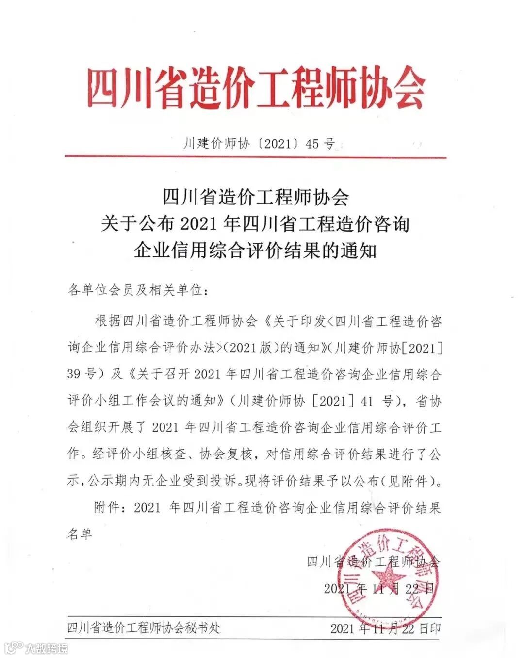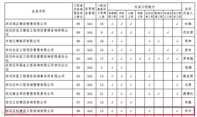连续八年荣获四川省造价咨询企业信用等级AAA评级
