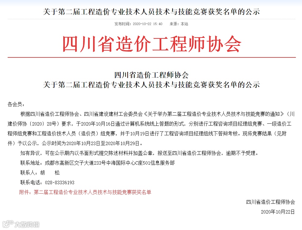2020年10月16日上午9点30分,由四川省造价工程师协会、四川省建设建材工会联合举办的第二届工程造价专业技术人员技术与技能竞赛在西藏饭店顺利开幕并线上直播。参加本次线上理论竞赛的专业人员共计1800余人,四川正科建设工程咨询有限公司派出郑宇昶、李子洋等多位造价工程师、造价人员参与本次竞赛。