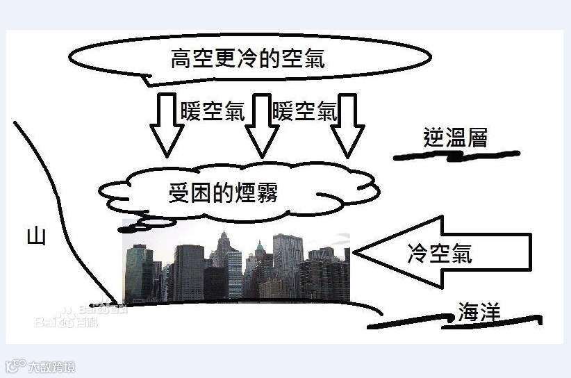 在底层大气,大气温度随着高度增加而下降,每上升100m(米),温度降低0.6℃左右。也就是说,在数千米以下,一般是低层大气温度高、密度小,高层大气温度低、密度大。这种大气层极容易发生上下对流运动,可将近地面层的污染物向高空和远距离输送、扩散,从而使城市上空污染程度减轻。在某些天气条件下,地面上空的大气结构会出现气温随高度增加而升高的反常现象,称之为“逆温”,发生逆温现象的大气层称为逆温层。逆温层像一层厚厚的被子罩在上空,使上下层空气减少了流动,近地面层大气污染物“无路可走”,越积越多,空气污染越来越重。