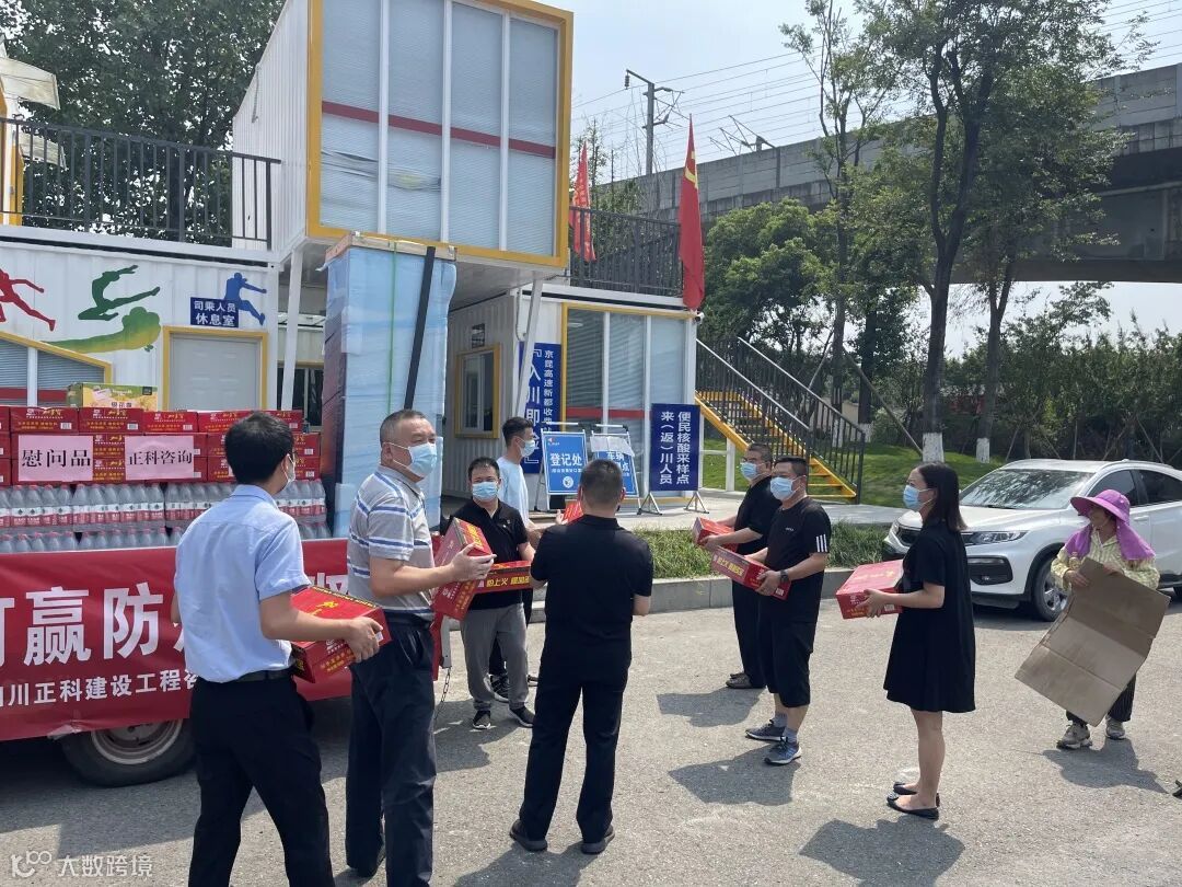 为了给防疫卡点值勤人员防暑降温,保障一线防疫战士的身体健康。2022年7月9日,四川正科建设工程咨询有限公司党支部积极开展“夏日送清凉”活动,为持续奋战在交通各卡口的一线执勤人员送去了加多宝、矿泉水、藿香正气液等防暑物资。支征兵董事长表示,正是他们24小时值守,严格执行检查任务,才确保了防疫不留死角,向他们的尽职尽责表示感谢。交通运输执法总队刘骥副总队长、新都区交通运输局相关负责人对我公司给予了充分肯定。