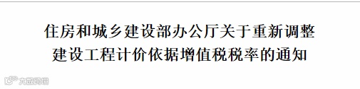 按照《财政部 税务总局 海关总署关于深化增值税改革有关政策的公告》(财政部 税务总局 海关总署公告2019年第39号)规定,现将《住房城乡建设部办公厅关于调整建设工程计价依据增值税税率的通知》(建办标〔2018〕20号)规定的工程造价计价依据中增值税税率由10%调整为9%。