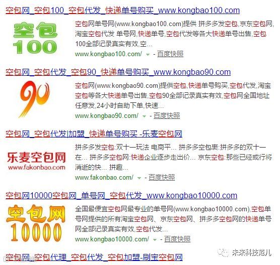 物流空包的网页截图