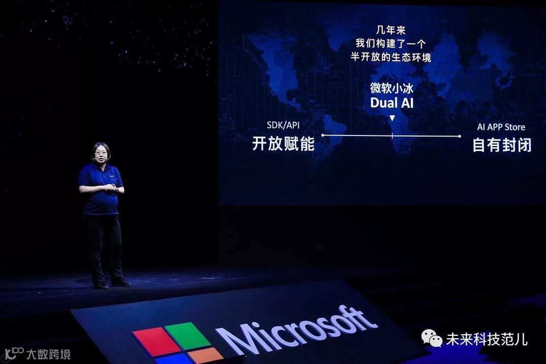 发布会上,微软首次披露小冰在全球已拥有6.6亿用户,占据了全球对话式人工智能总流量中的绝大部分。微软在第六代微软小冰年度发布会上提出 Dual AI 战略。Dual AI 战略的整体思路并非以自身为核心去打造一个新的人工智能生态,而是通过输出技术的路径,去融入到其它已有的 AI 平台中。