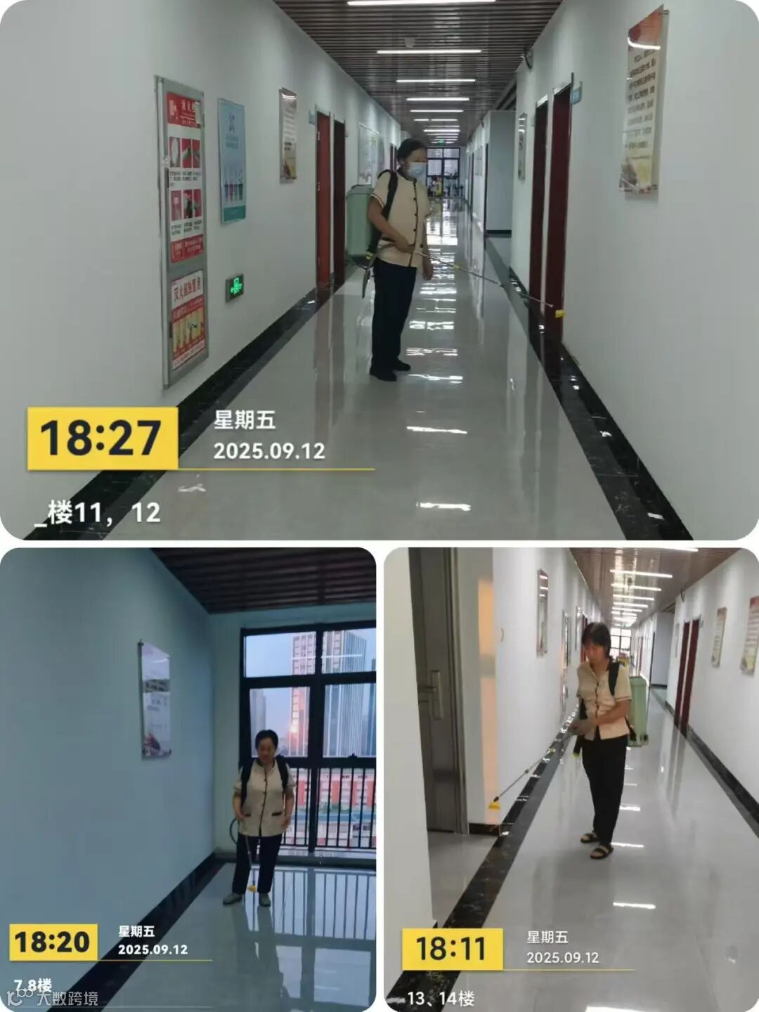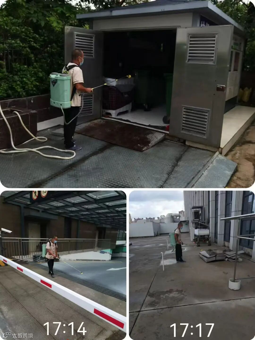 疫情以来,保洁部已将防蚊灭蚊工作纳入常态化管理,对大厦的各楼层通道、卫生间、垃圾房、停车场等公共区域进行“地毯式”喷洒,确保蚊虫防控不松懈。