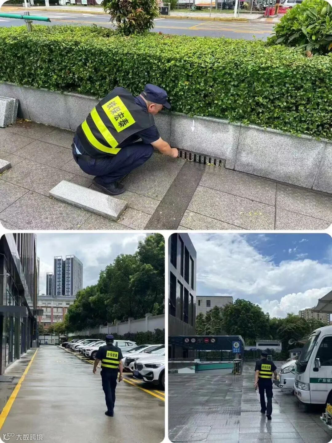安保部加强大厦所有排水口以及天面的巡查工作;