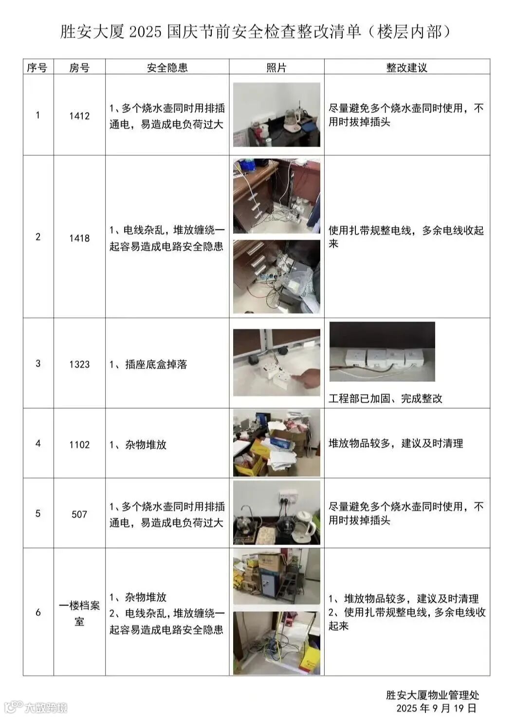 九月的坚守,是对安全的承诺;九月的付出,是为团圆的护航。本月通过节前“拉网式”排查与台风“实战化”应对,大厦安全隐患得到有效消弭,基础设施运行更趋稳定。