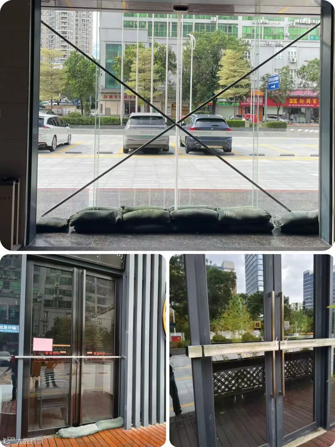 大厦商铺、各楼层玻璃门加固,增强抗风能力;