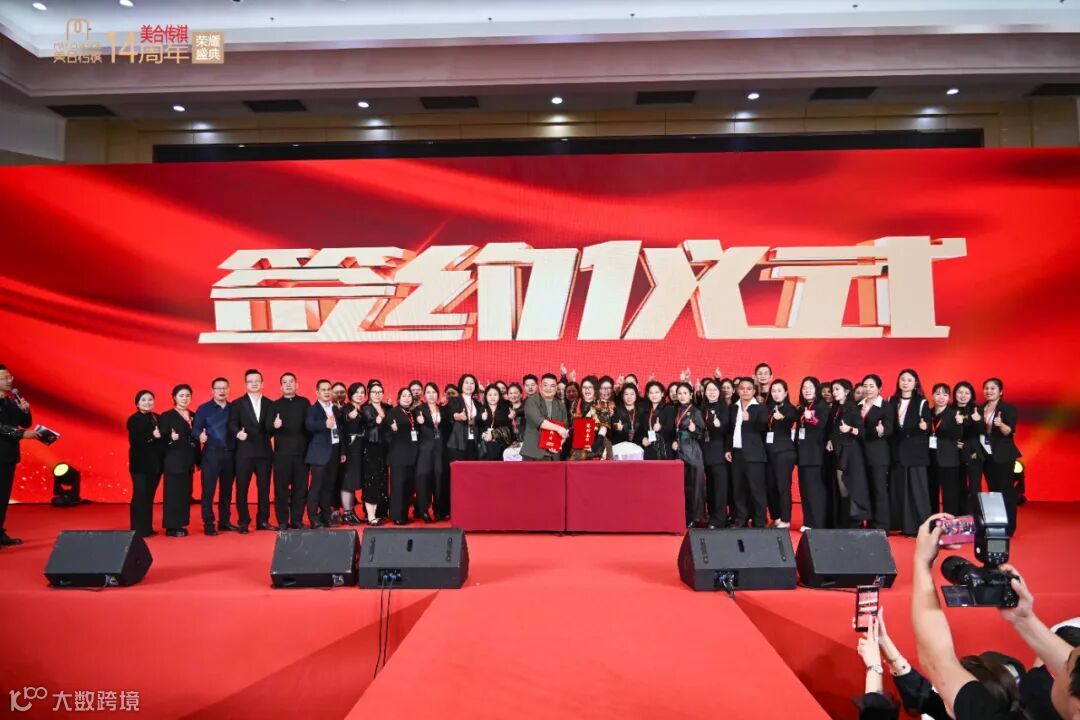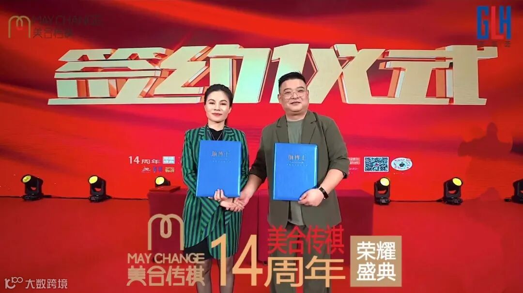 庆典晚宴上,乐添集团孔辉女士与美合传祺创始人简金华选生现场签约,达成战略合作,并致辞展望共赢。