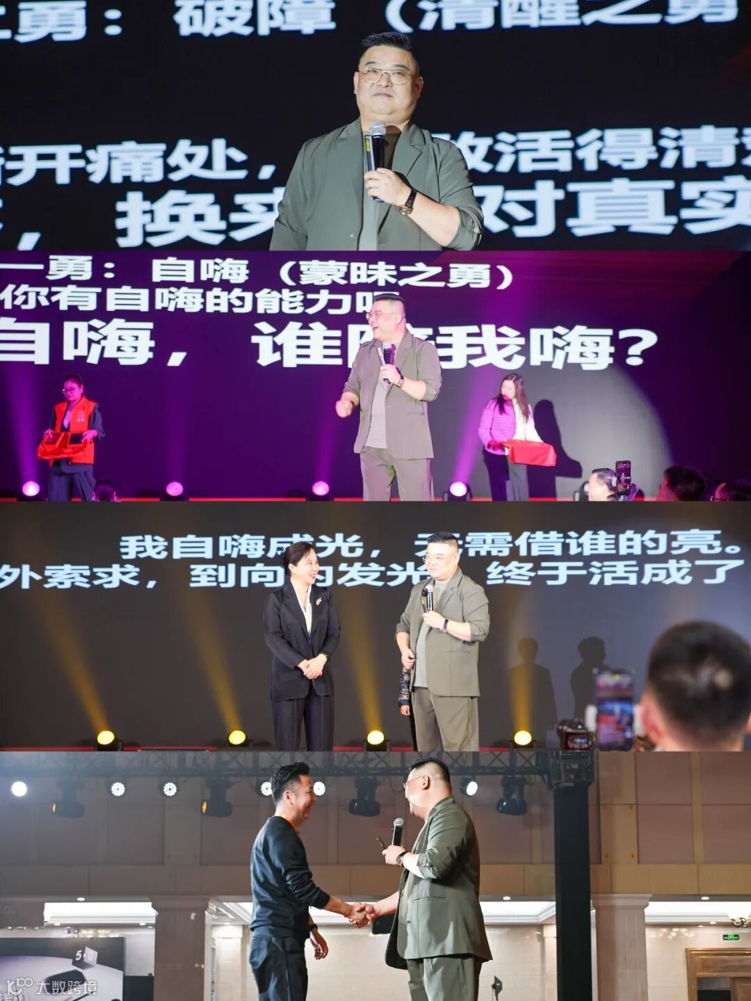 演讲从个人谈到企业。在个人篇中,以五重勇气概恬成长之路必须经历的五重境界,第一重到第五重,形成一个闭环,也就是阅尽人世沧桑,处在不惑之年,仍然能“嗨”……