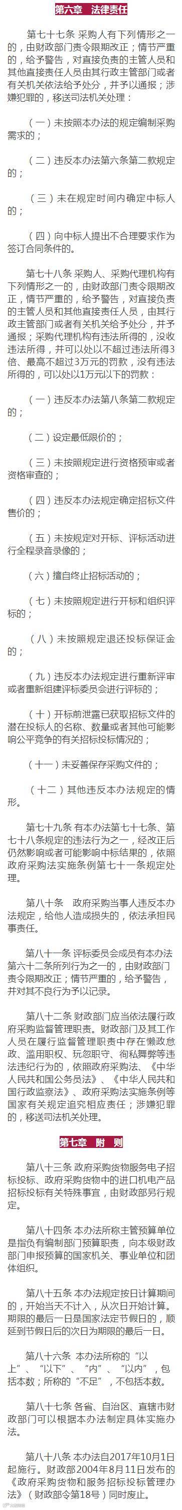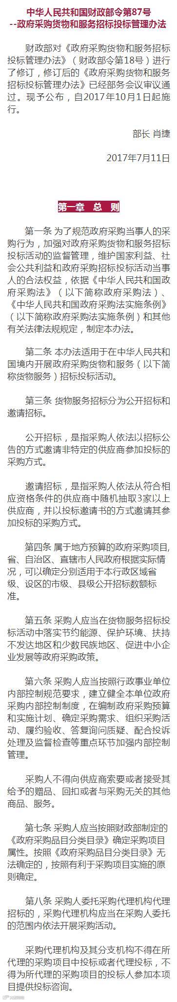 《政府采购货物和服务招标投标管理办法》修订公布