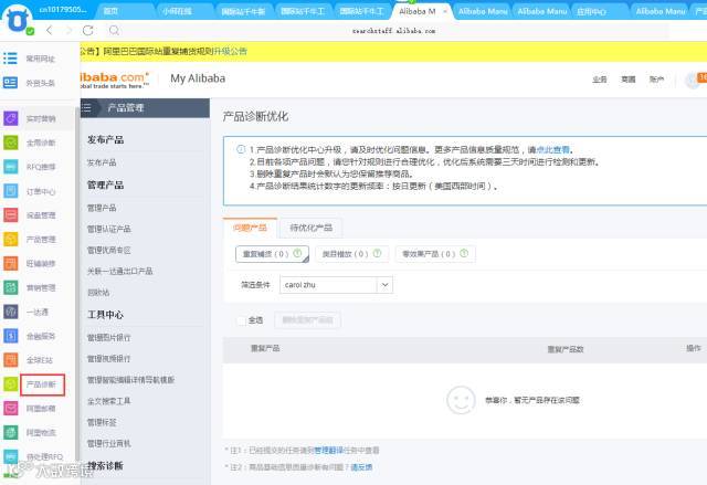 ◆解决小技巧:在国际站千牛平台,就可以通过常用插件/快捷搜索栏,快速找到“产品诊断”等快速实用功能。