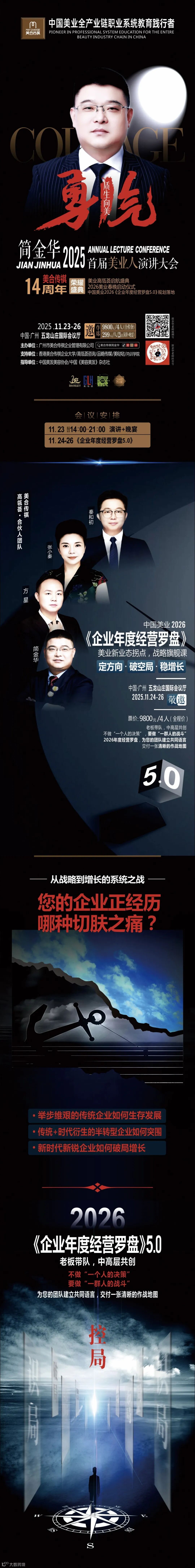 导读:“简金华2025首届美业人演讲大会”中国美业2026《企业年度经营罗盘5.0》规划落地——美业新业态拐点战略旗舰课