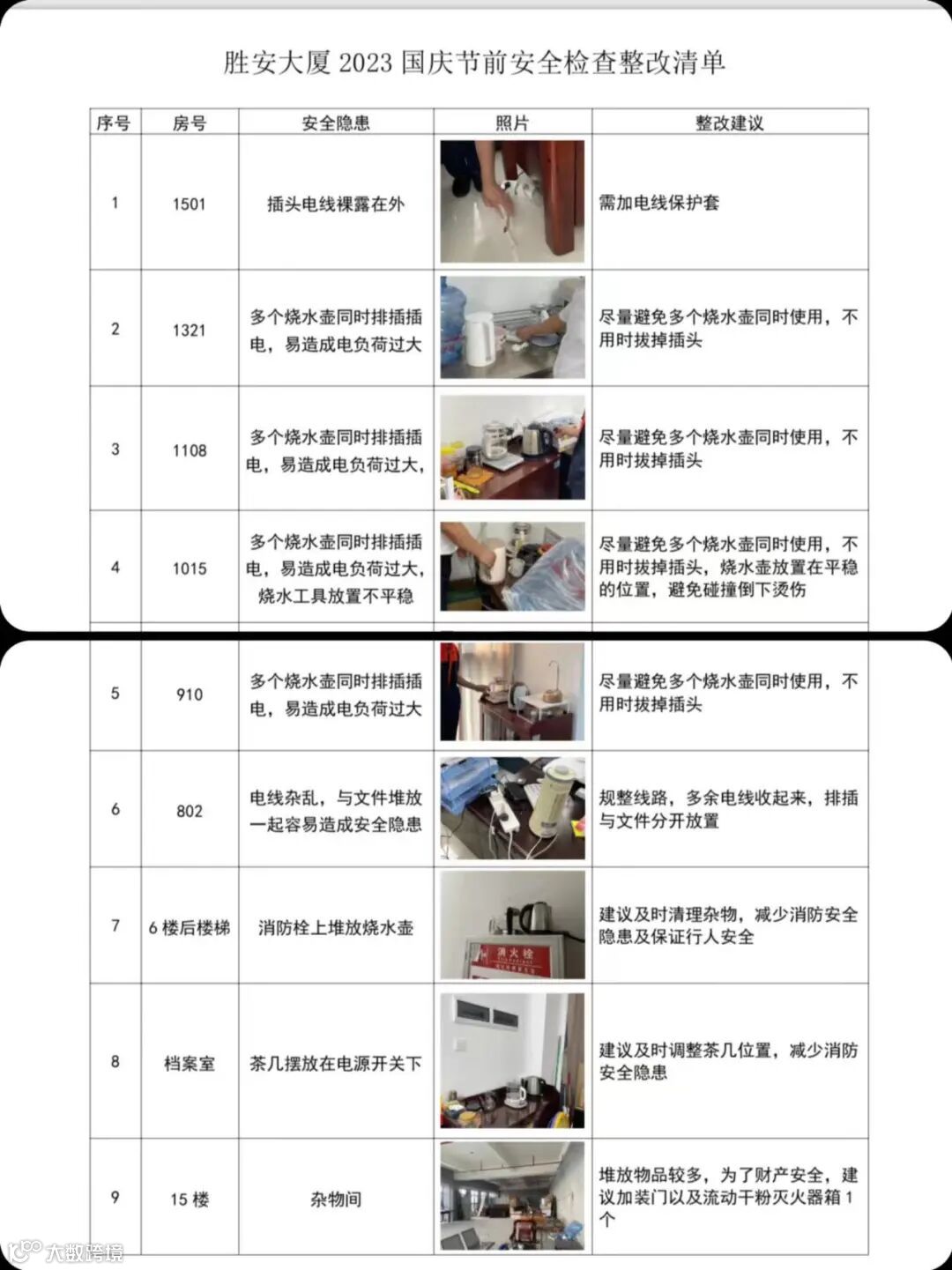 对于存在安全隐患的区域,详细做好安全检查记录,针对发现的问题及时整改,消除安全隐患,在后续工作中保持对隐患区域的关注,为客户平安过节保驾护航。