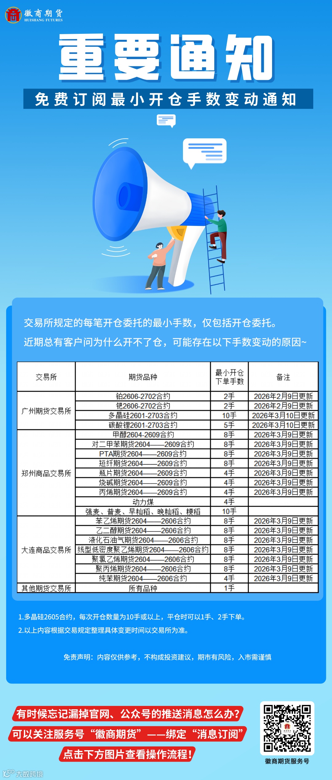【重要通知】免费订阅最小开仓手数变动通知!!!