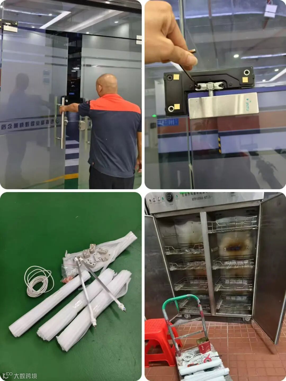 检修空调、维修门锁、更换消毒柜发热灯管、更换LED灯管、调整排插位置、填补墙缝……工程部一刻也没闲着。