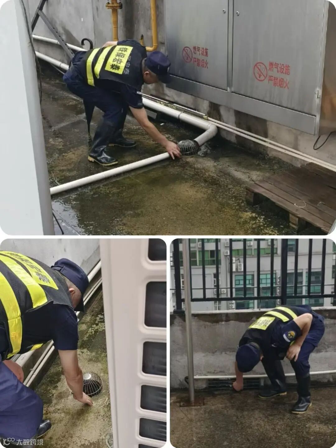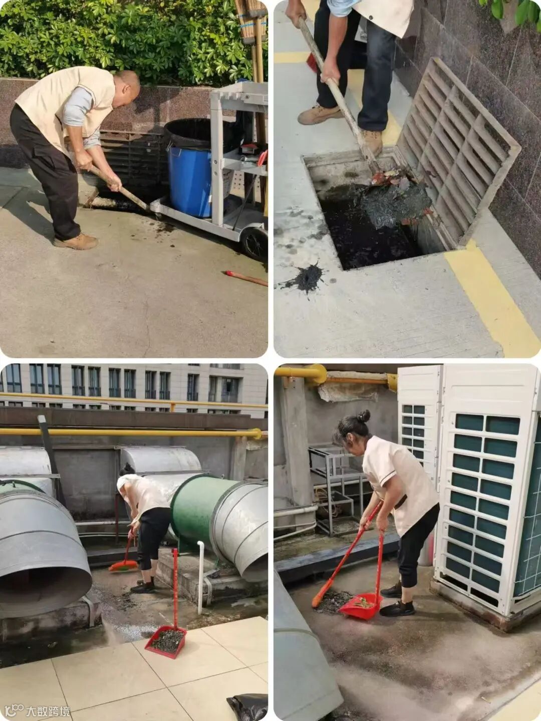 暴雨来临前,及时清理大厦排水口、天面淤泥,确保大厦排水系统畅通,安全度汛。