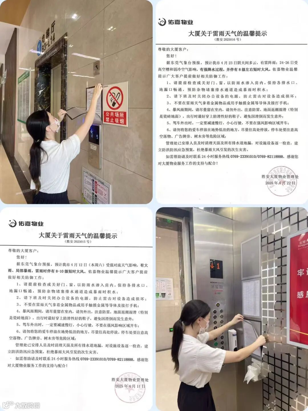 雷雨天气及时推送、张贴各类温馨提示,提醒广大客户提前做好相关的防御工作;