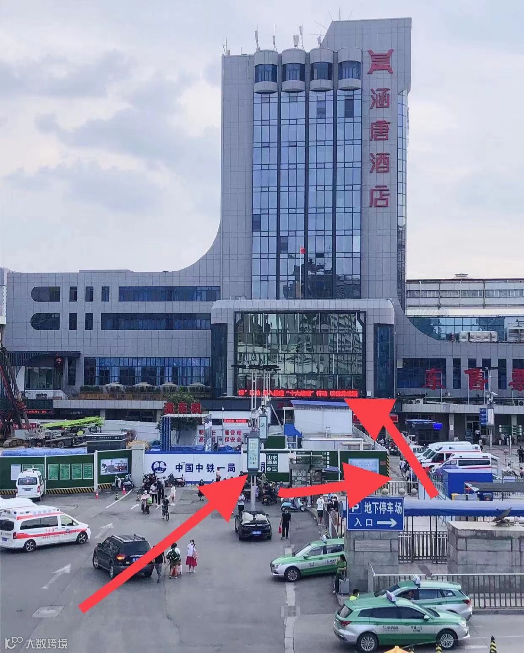 ①地铁:下高铁后→地铁1号线(往河南工业大学方向)→二七广场站D口出→步行经过德化街(300米左右)右转→大同路走到尽头(800米左右)→涵唐酒店