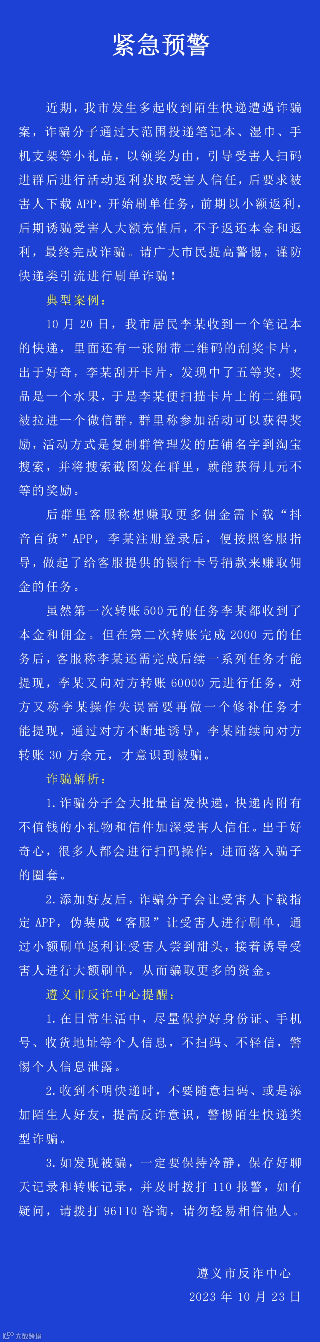 反诈宣传丨遵义公安反诈紧急预警通报(2023年-第1期)