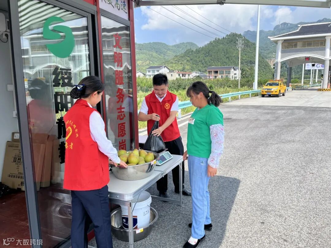 志愿者们来到梨园,帮助老人进行了摘梨、选品、装箱等一系列工作,并通过微信朋友圈宣传和各收费站点、便民服务亭售卖等线上线下相结合的方式,帮助老人卖出东山梨共计1000余斤,实现近万元收入。