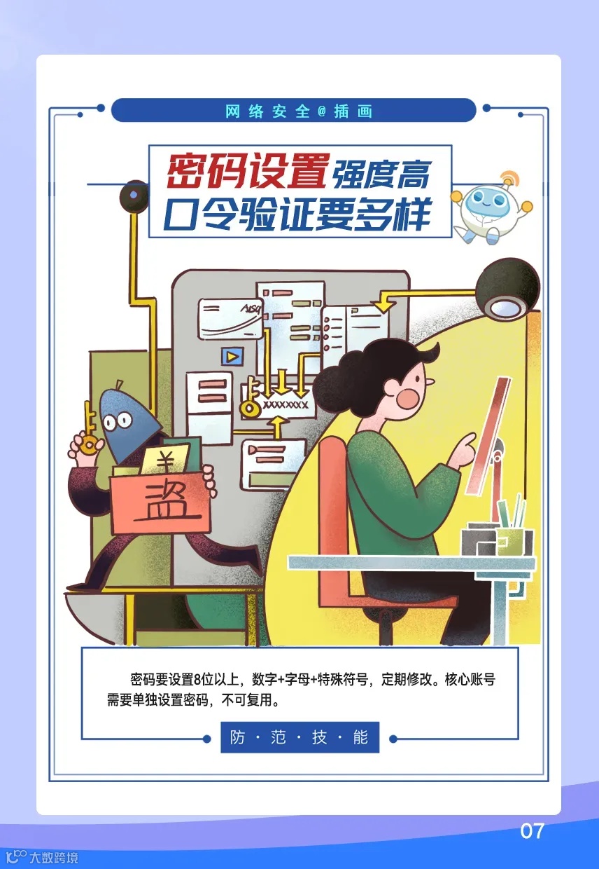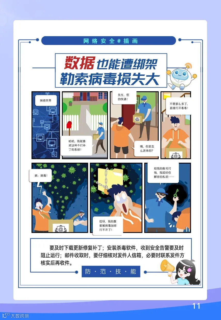 ,邀请50多位插画师展开创作,最终精选出12幅优秀插画进行集中展示。以色彩绚丽、风格鲜明的画面为载体,呈现可视化的网络信息数据安全典型场景和防范技能,推动网络安全知识深入人心。
