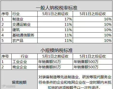 从2018年5月1日起,实施以下深化增值税改革征收标准整理如下: