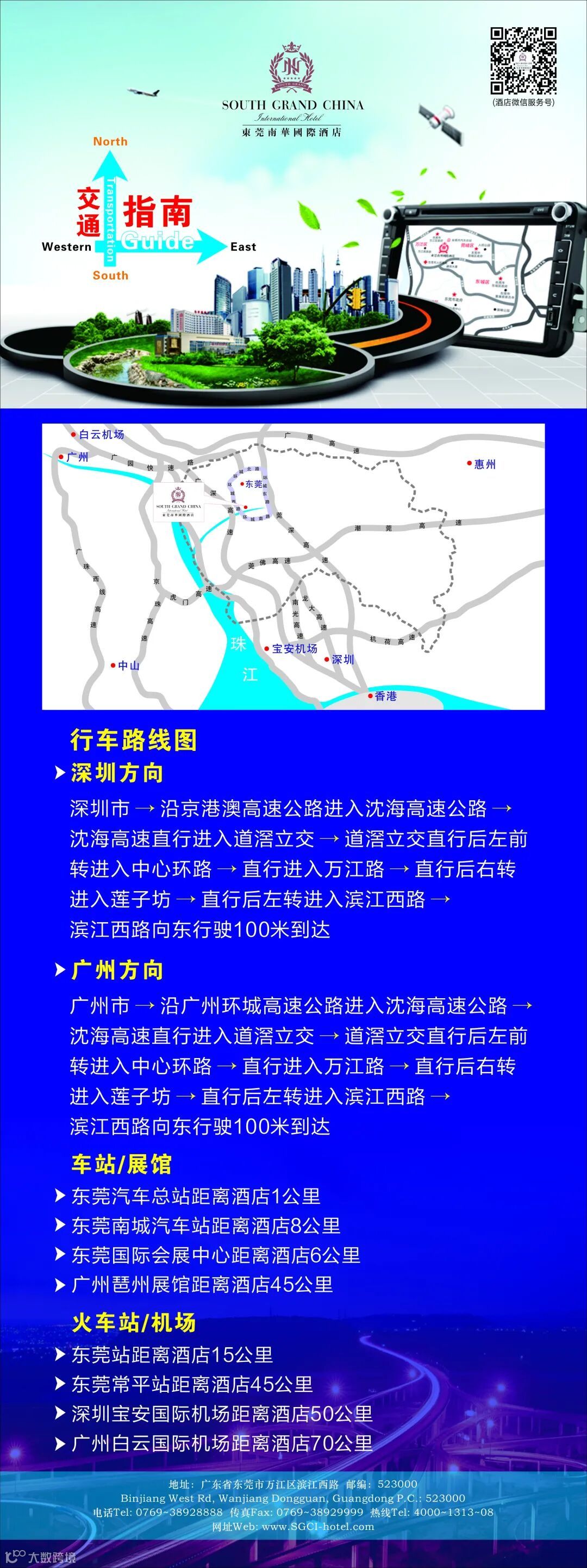 A、自驾车/的士路线:深圳机场→广深高速→广深高速东莞道滘高速出口下→七分钟车程东莞南华国际酒店。