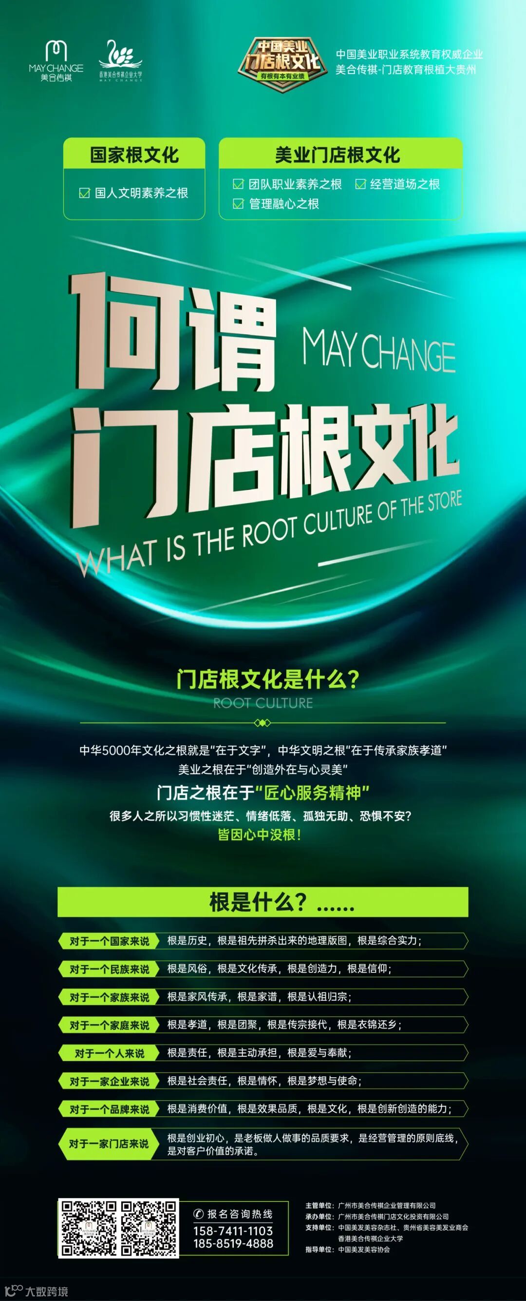 客户是根,员工是本;嵌入中国传统文化基因,链接门店老板创业初心,做有灵魂的服务,呈现有品质的结果,展示有爱的情感,用温度温暖客户,用深度照顾好客户,用宽度做大客户圈,用根文化爱护每一个客户,做到价值服务,让门店成为客户第二个放松心灵的家。