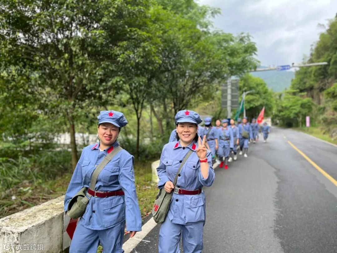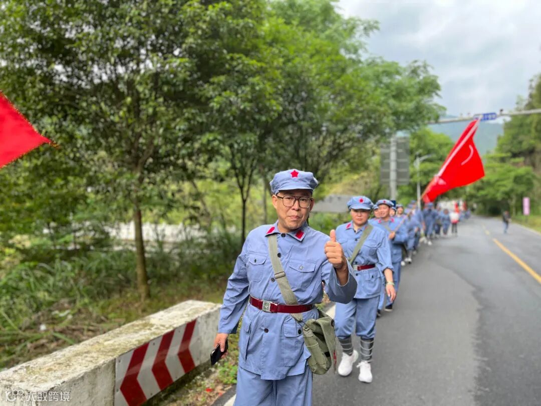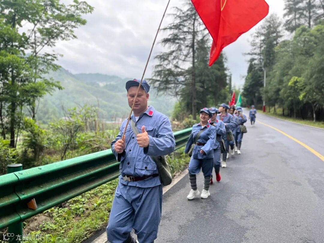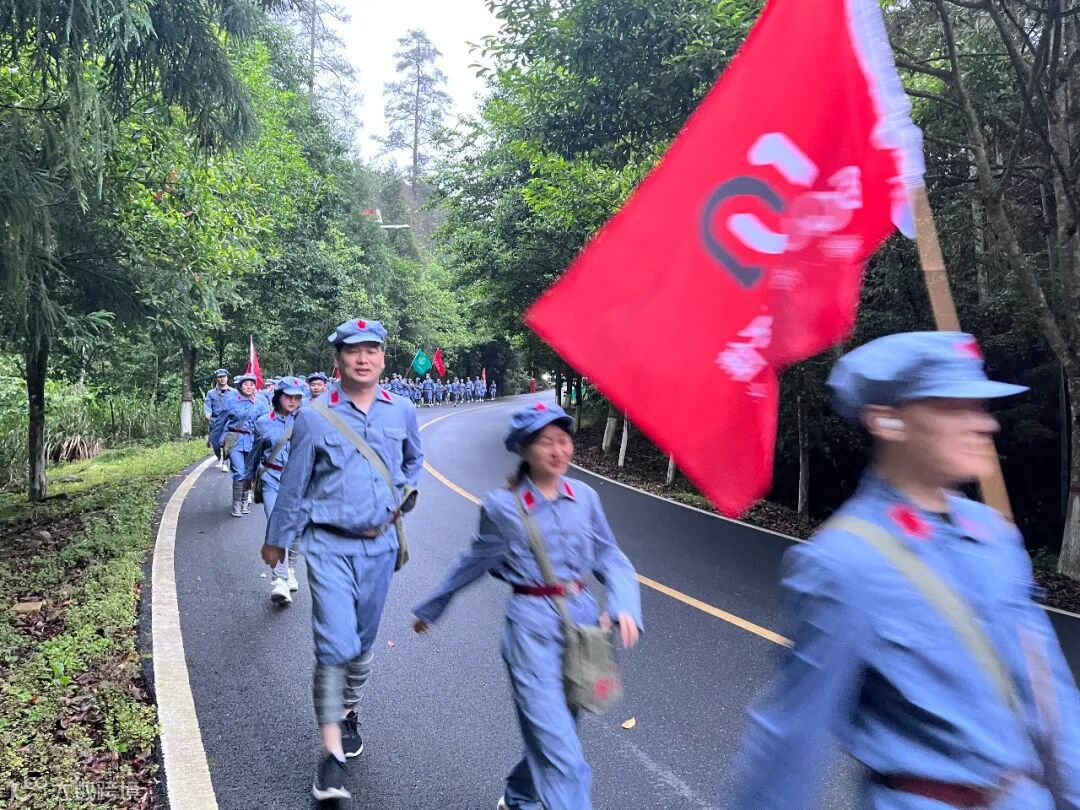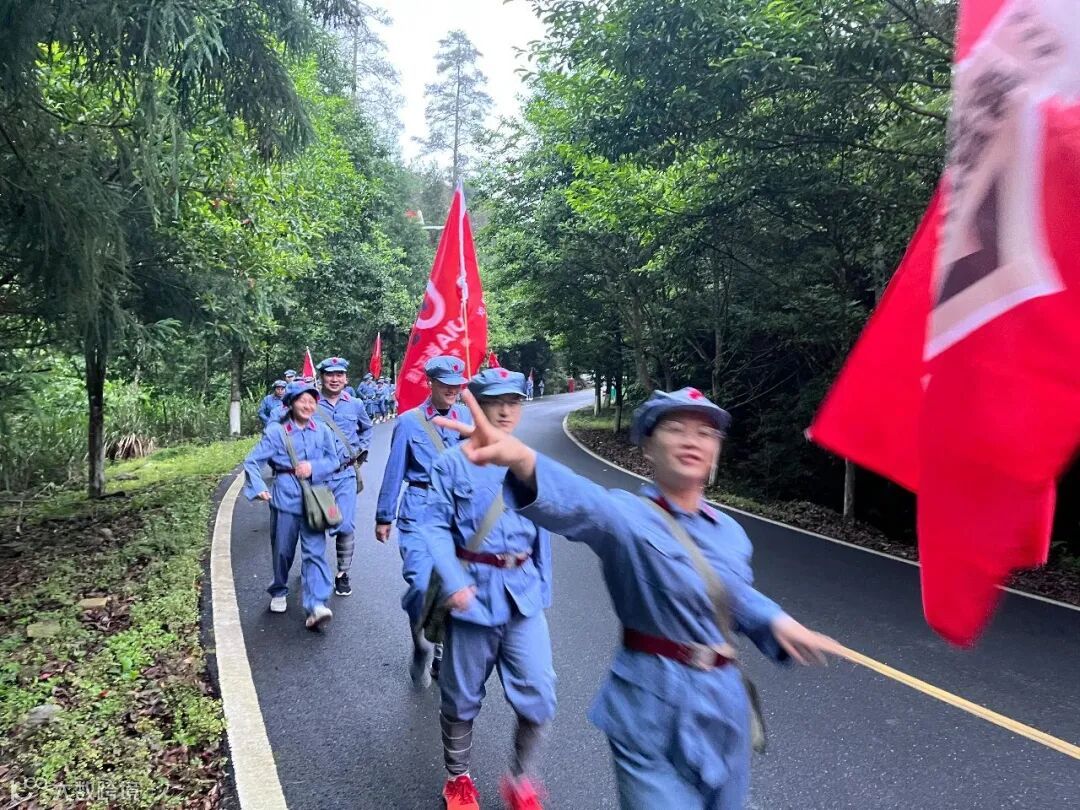 用脚丈量长征路,用心感受红军行。纸上得来终觉浅,绝知此事要躬行。学员们肩挎红军包。沿着红军足迹,化身“急行军”,踏上红军当年走过的小路,一同爬上山坡,险峻山林之中的这条蜿蜒小道,见证了红军路上每一步的艰辛与荣耀。成员们在这条羊肠小道重走革命先烈留下的光辉足迹,感受先辈们爱党爱人民的赤诚之心。