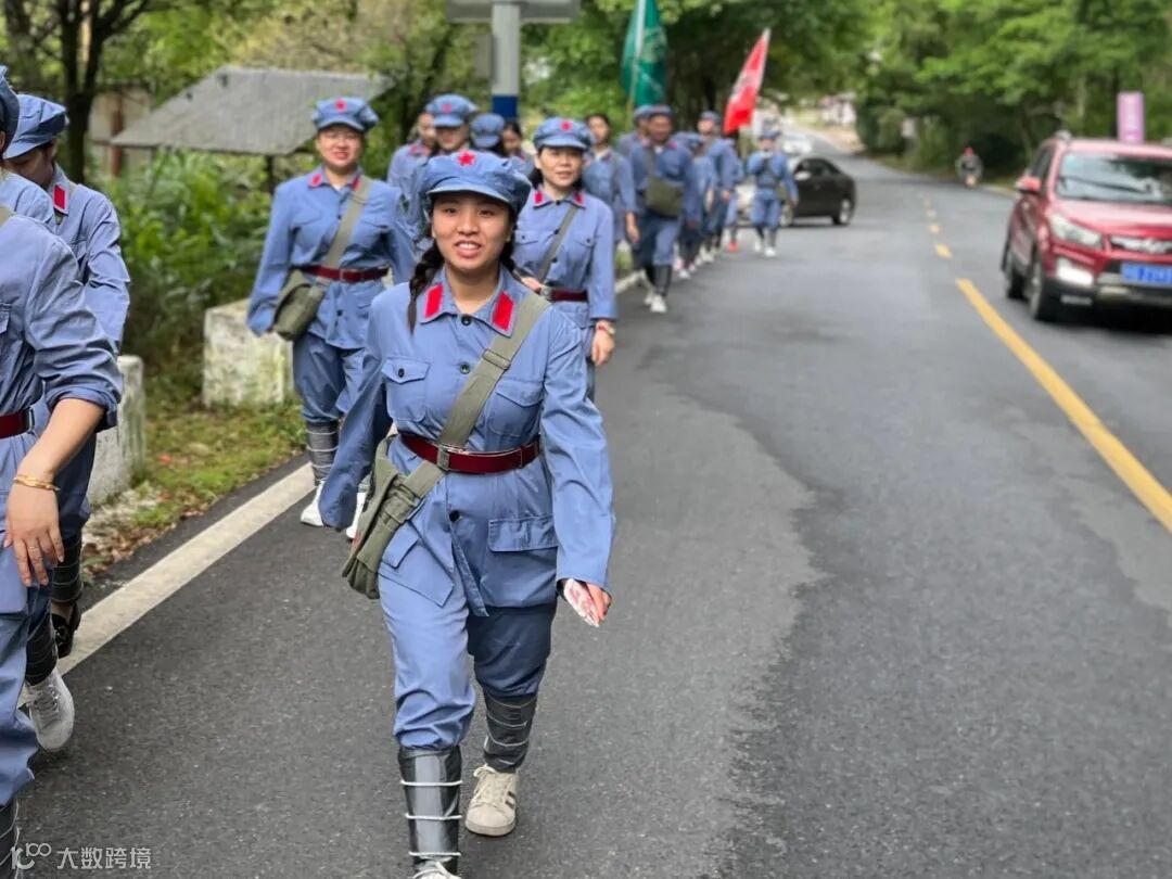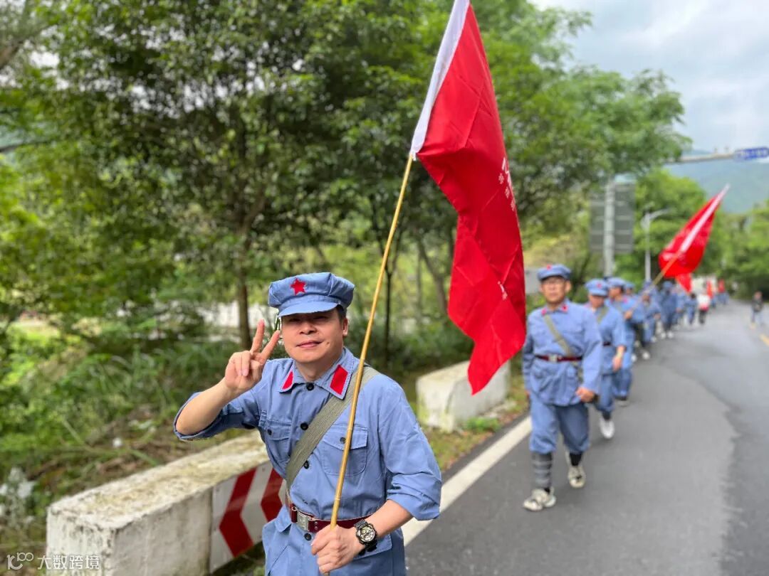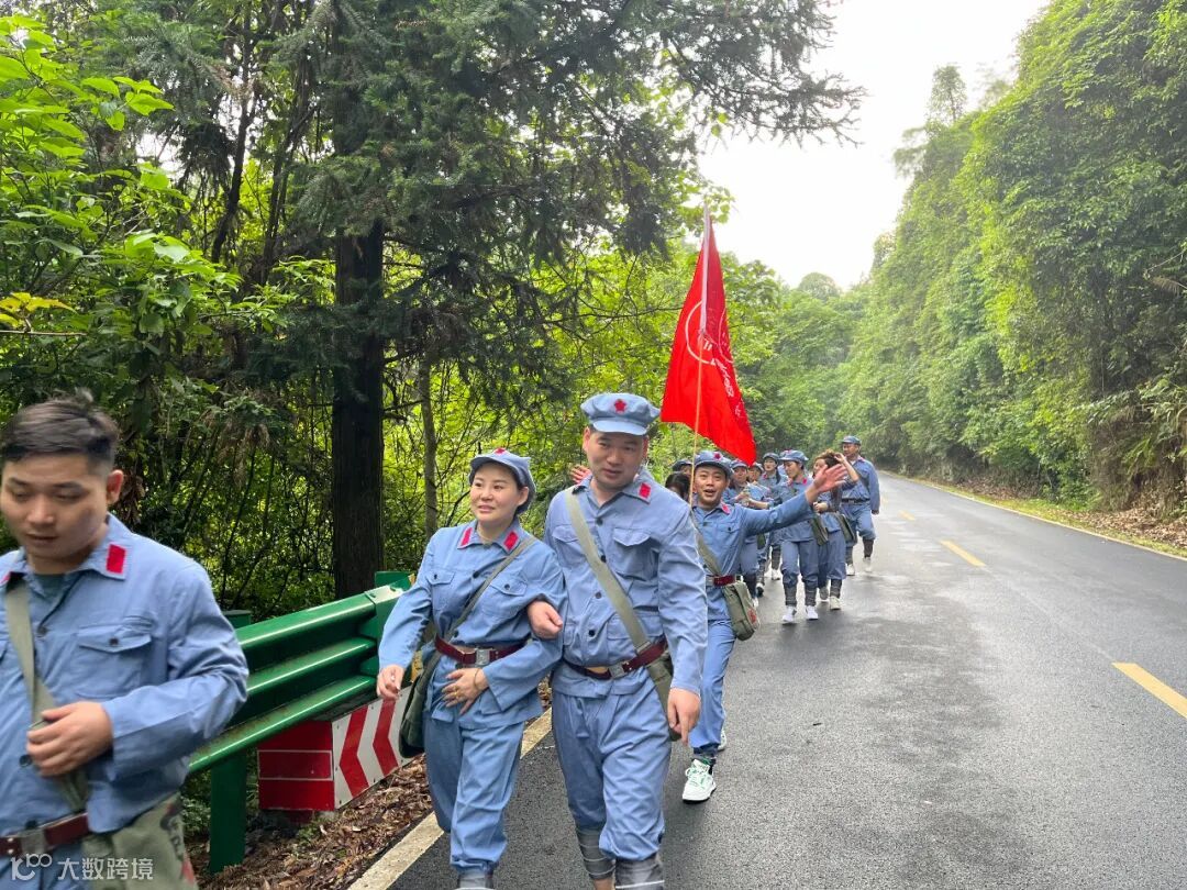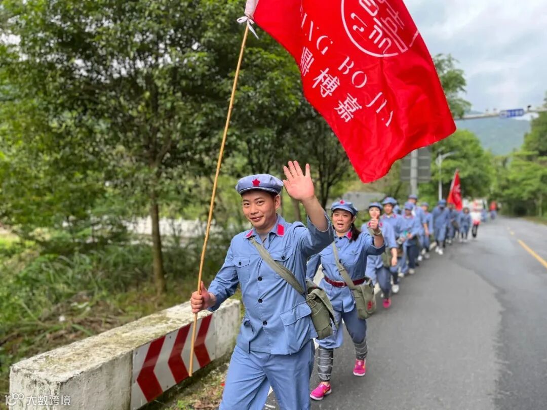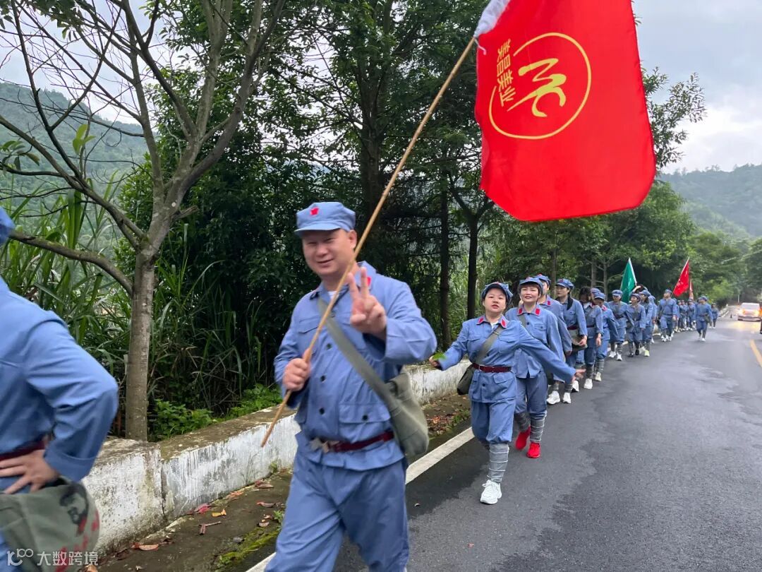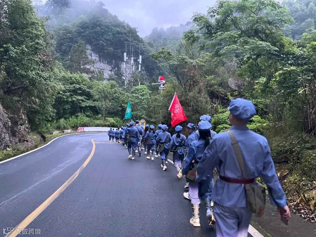 用脚丈量长征路,用心感受红军行。纸上得来终觉浅,绝知此事要躬行。学员们肩挎红军包。沿着红军足迹,化身“急行军”,踏上红军当年走过的小路,一同爬上山坡,险峻山林之中的这条蜿蜒小道,见证了红军路上每一步的艰辛与荣耀。成员们在这条羊肠小道重走革命先烈留下的光辉足迹,感受先辈们爱党爱人民的赤诚之心。