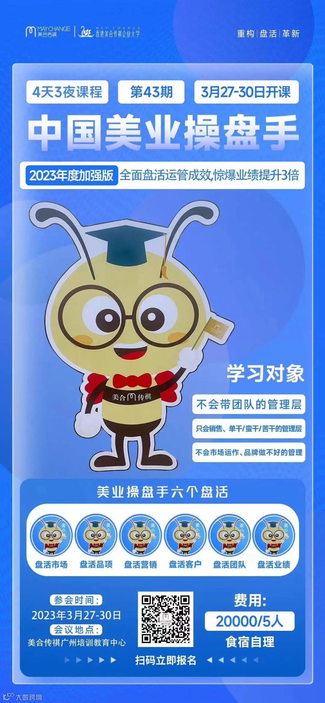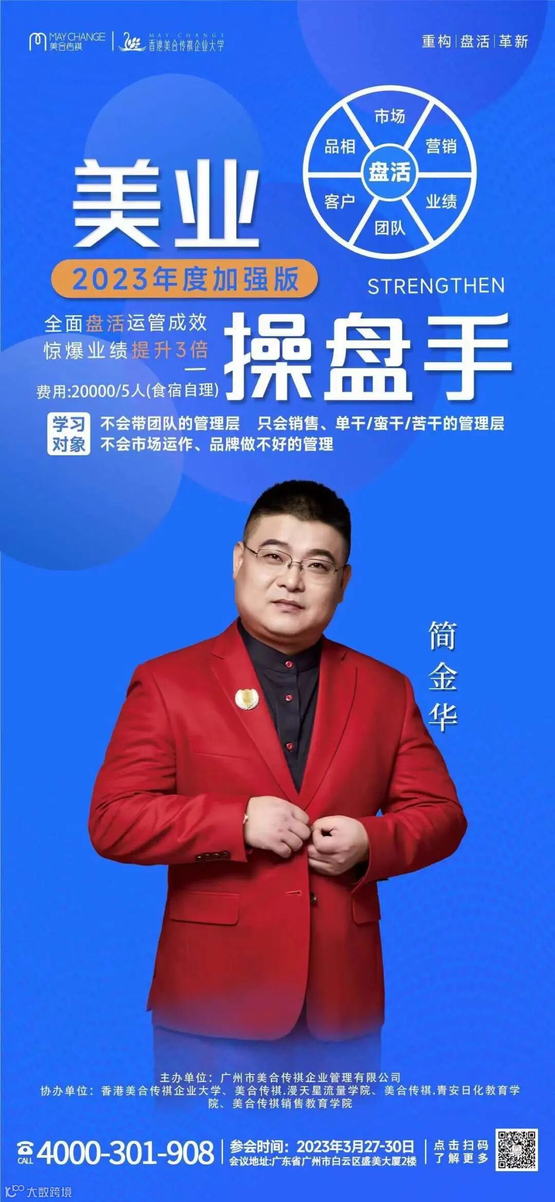2023中国《美业操盘手》全新升级改造,为操盘手搭建了一整套完善的操盘体系。课程涵盖六大盘活,四天三夜,一场精彩绝伦的落地课程盛宴,全程理论与实践相结合,问题与解决方案同步呈现辅导,帮助每一位学员做到:一听就明白,现场就出方案,保障回去就能干。
