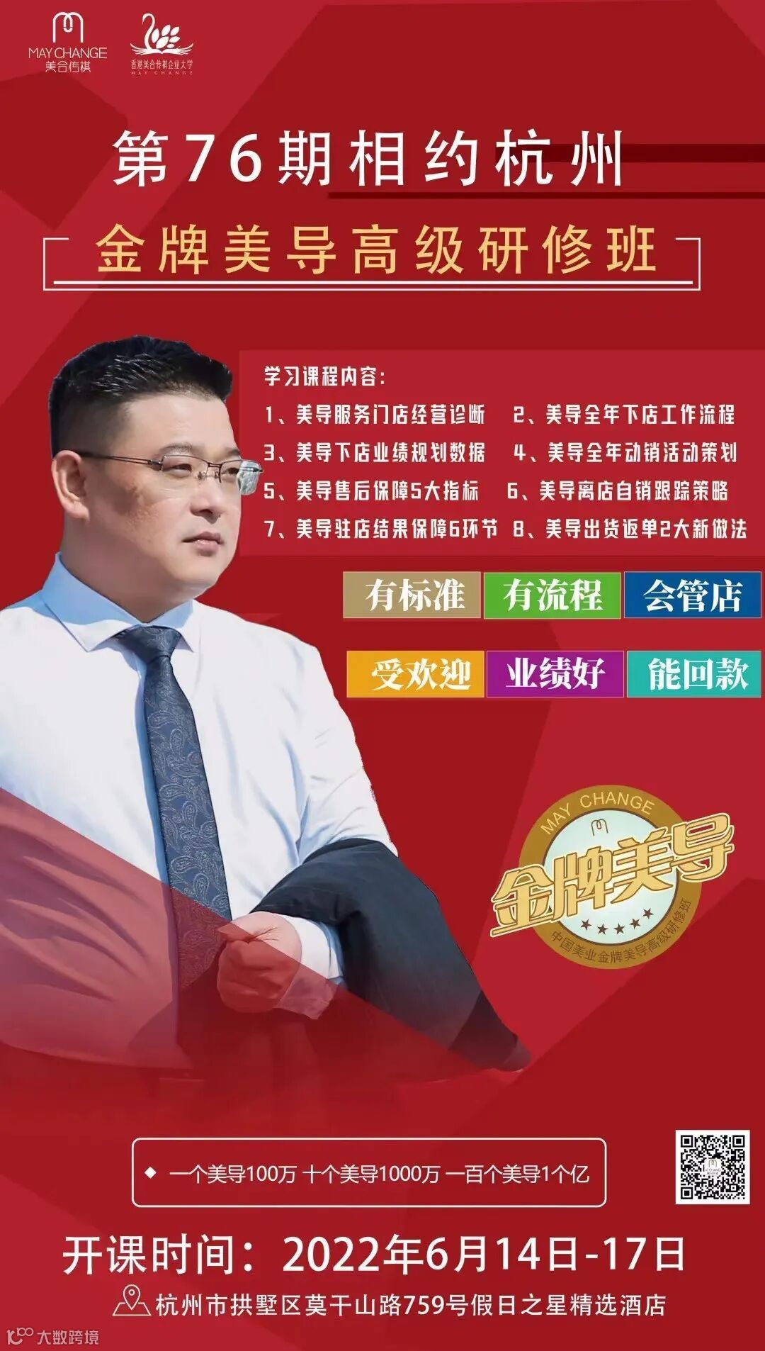 ️ 中国美业第76期《金牌美导高级研修班》于6月14-17日在杭州举行!
