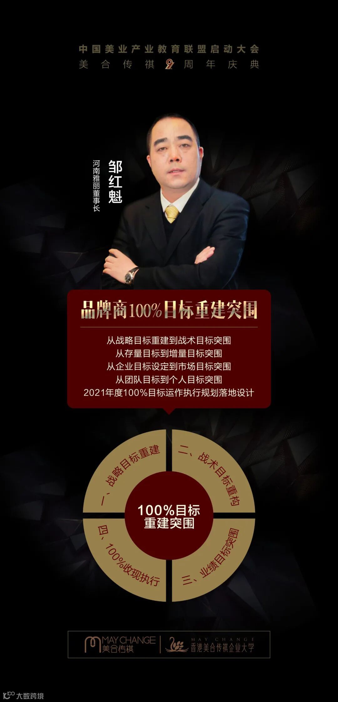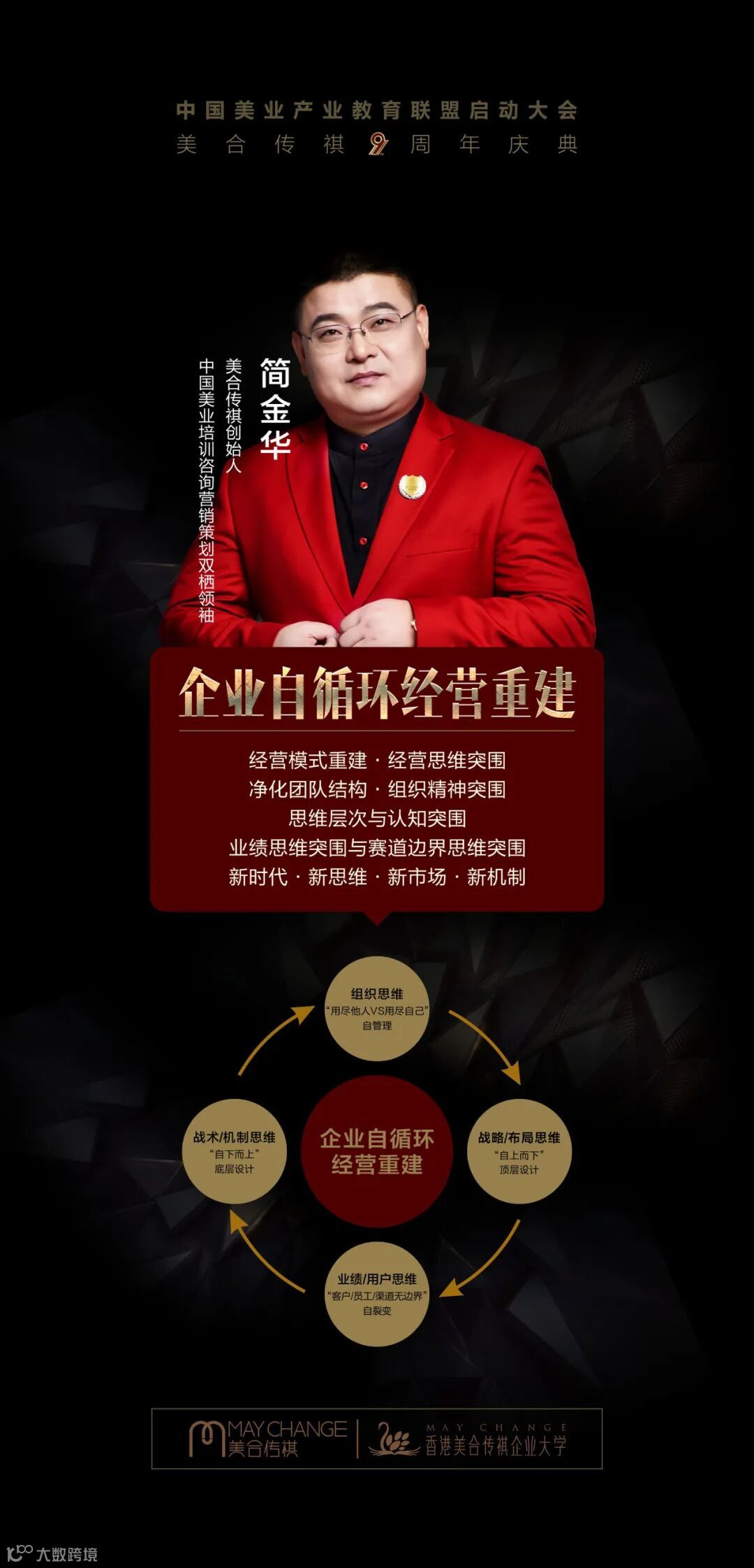 首先感谢您企业和您智慧的选择来参加此次中国美业产业教育联盟启动大会暨美合传祺9周年庆典-中国美业品牌商《100%重建突围》,我谨代表美合传祺欢迎您前来参会,十分感谢您和您的团队的支持。