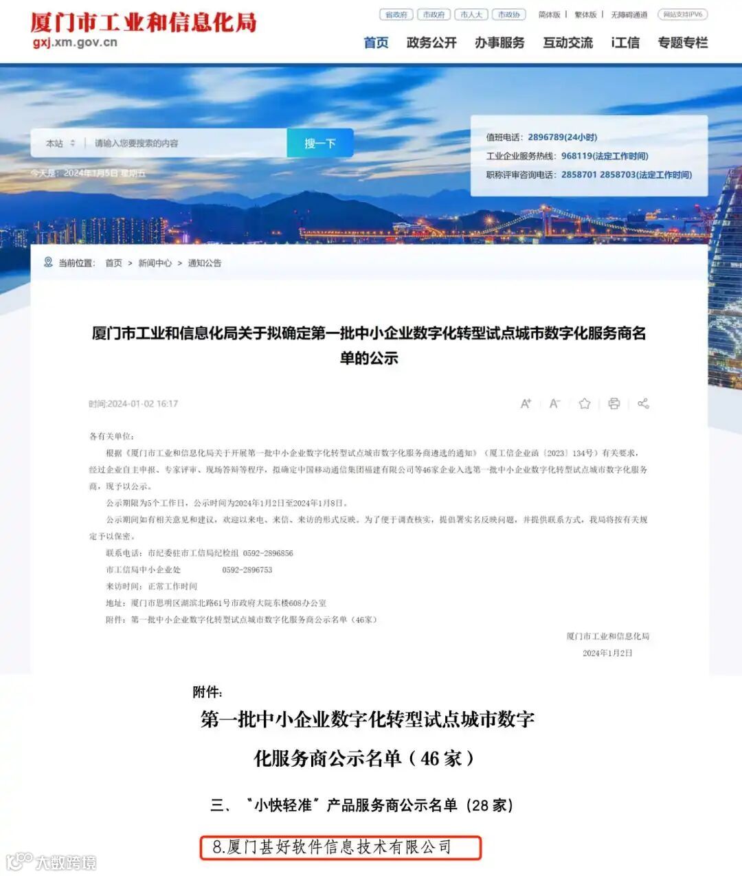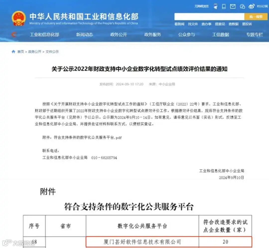 在厦门市工业和信息化局关于开展第一批中小企业数字化转型试点城市数字化服务商遴选中,甚好软件成为第一批中小企业数字化转型试点城市数字化服务商——“小快轻准”产品服务商!