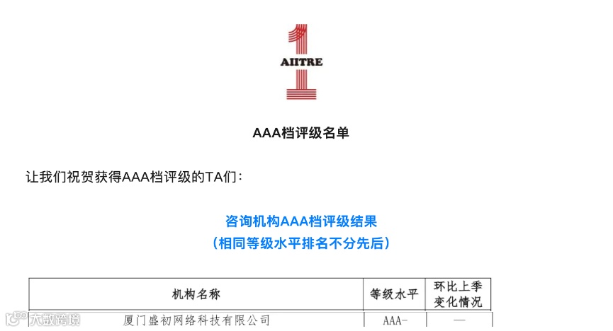 中关村信息技术和实体经济融合发展联盟(简称“中信联”)正式发布了《关于公布2024年三季度两化融合管理体系服务机构和人员评级结果的通知》,盛初网络再次入榜AAA级咨询机构!