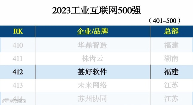甚好软件荣登《互联网周刊》联合eNet研究院、德本咨询发布的“2023工业互联网500强”榜单