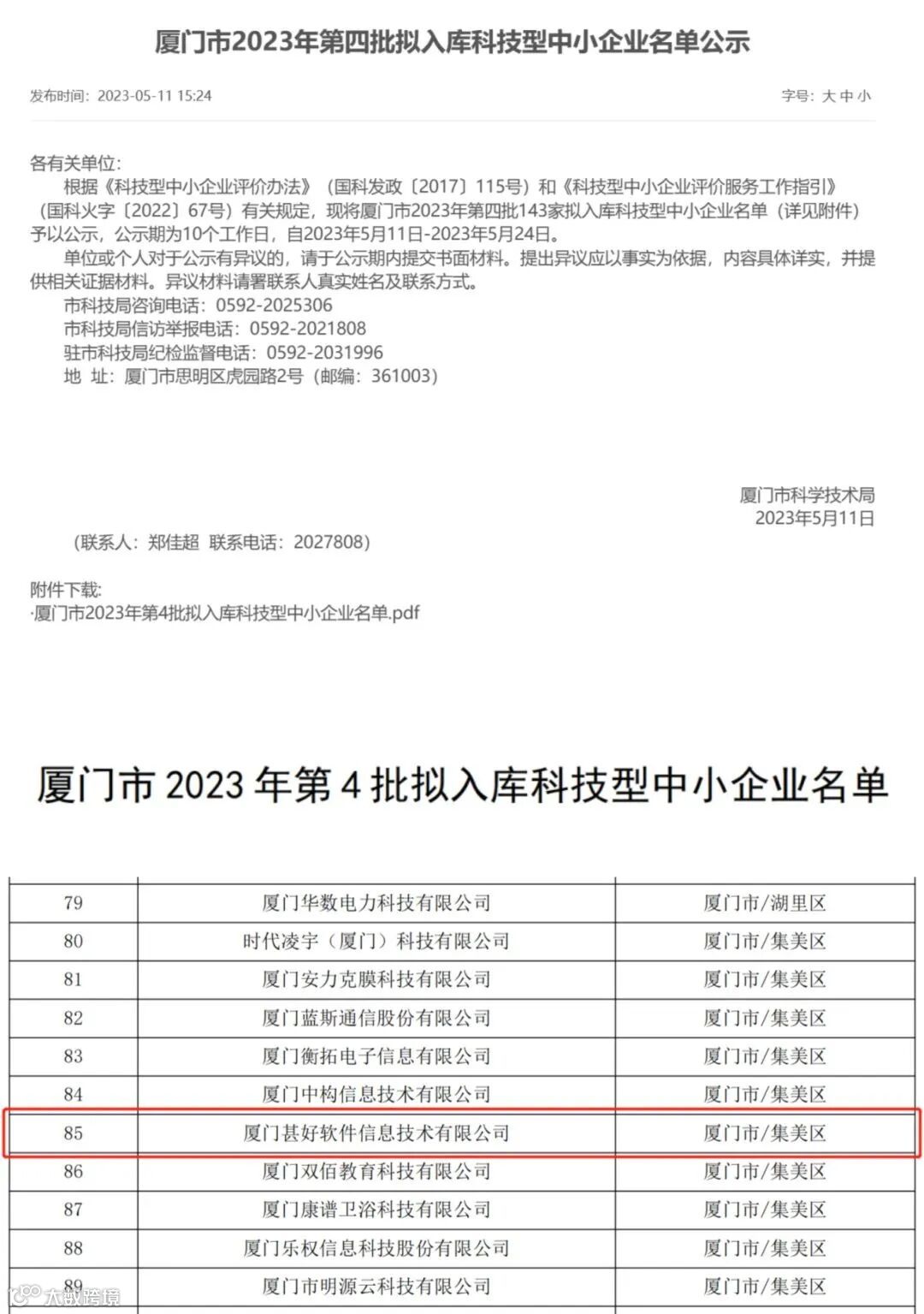 甚好软件入库2023年厦门市科技型中小企业名单