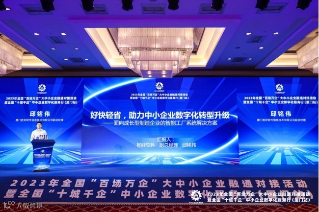 2023年全国“百场万企”大中小企业融通对接活动暨全国“十城千企”中小企业数字化服务行(厦门站)成功举办,甚好软件作为数字化转型服务商代表出席并分享方案与经验。