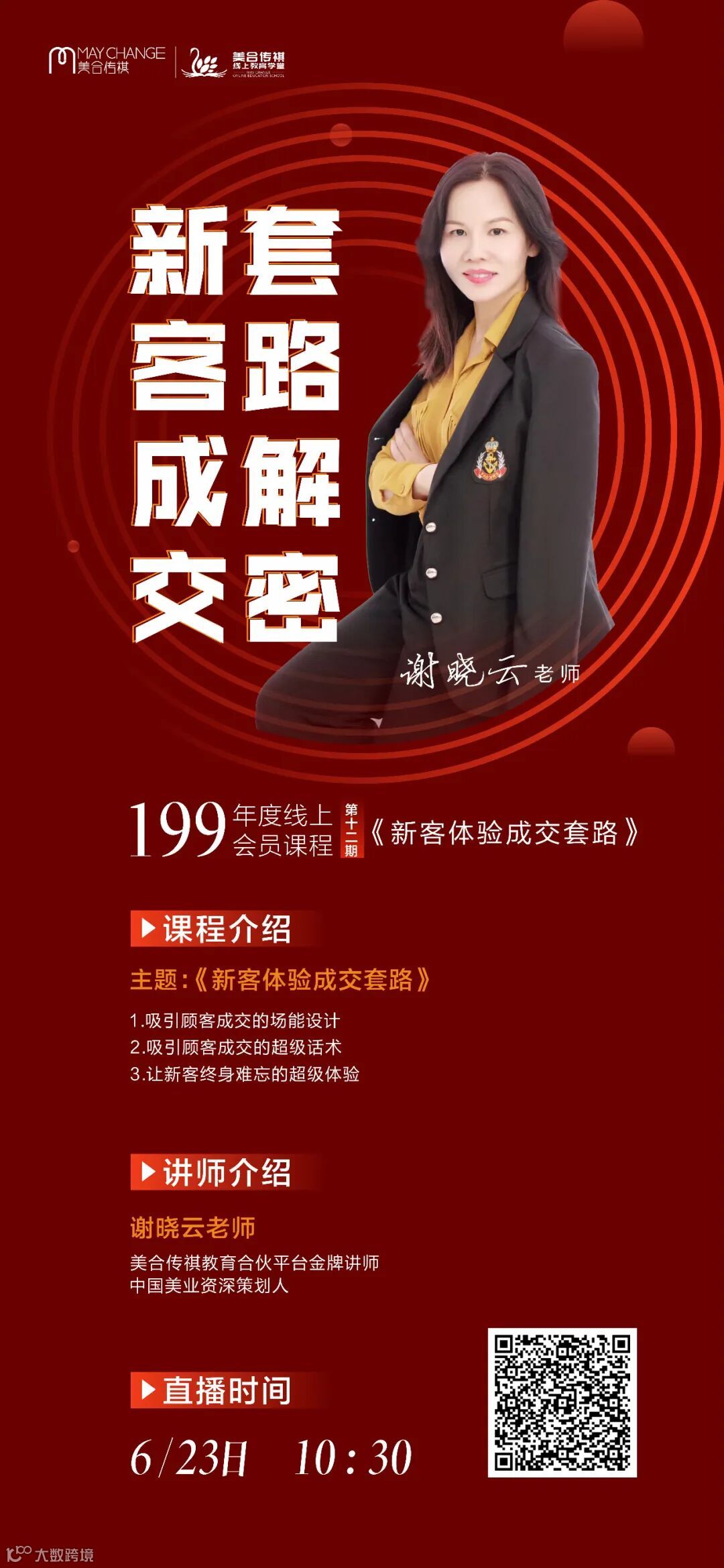 6月23日,美合传祺199元年度线上会员课程第十二期《新客体验成交套路》,与30家公司联手直播,超过6000家门店,近5万人同时在线学习!!