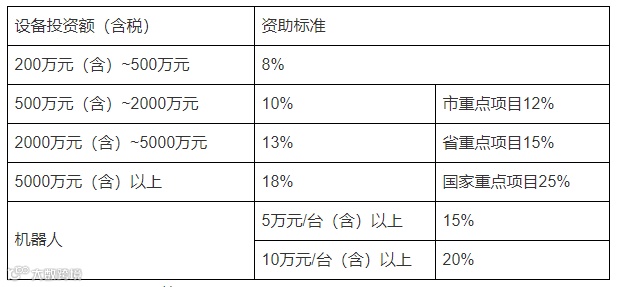 8.推进智能化技术改造。对生产性设备投资在200万元(含)以上并列入浙江省投资管理系统备案的的工业投资项目按设备投资额分档给予资助。