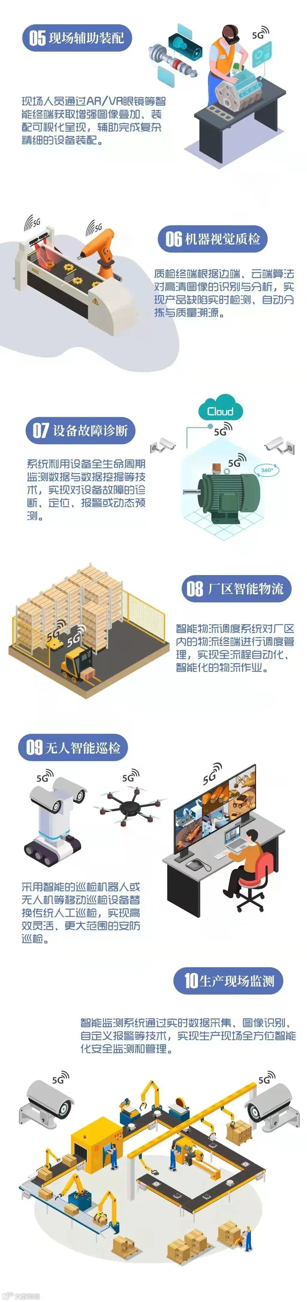 查阅“5G+工业互联网”典型应用场景和重点行业实践”,请访问工业和信息化部网站(www.miit.gov.cn)。