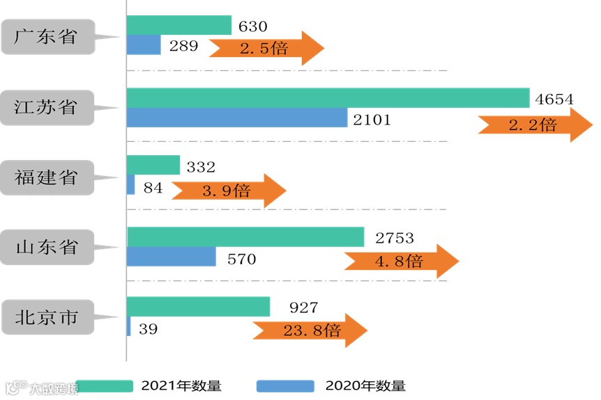 从区域参与增长率来看,2021年深圳、江苏、福建、山东以及北京市鼓励企业开展标准应用,辖区内完成智能制造能力成熟度自诊断企业数量较2020年度有显著提升,增速位居全国前列。