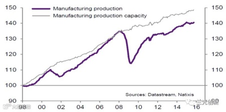 ▲ 图2 制造业实际生产与产能的对比图 来源:Datastream,Natixis
