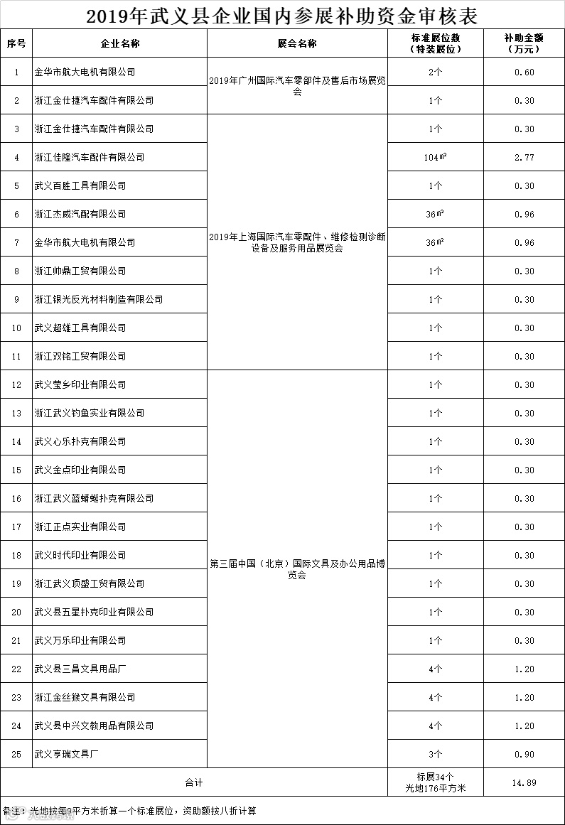 2.2019年武义县企业国内参展补助资金审核表