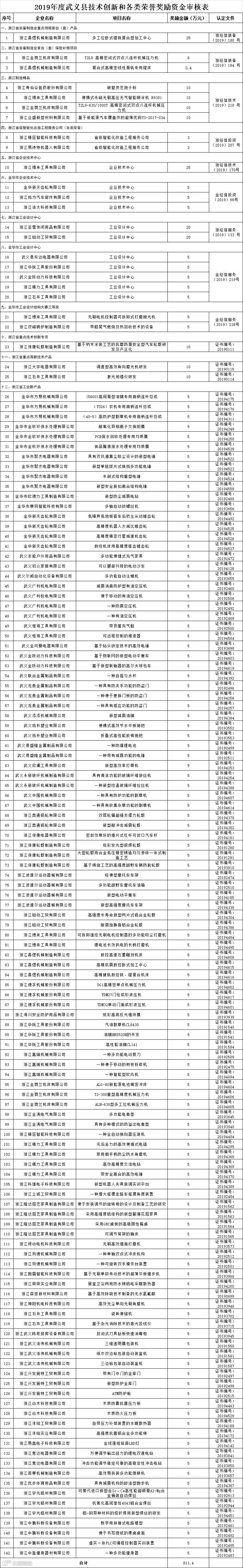 1.2019年度武义县技术创新和各类荣誉奖励资金审核表