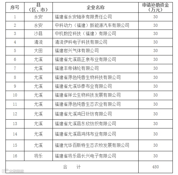 近日,三明市工业和信息化局发布《两化融合管理体系贯标专项资金拟补助项目的公示》,三明共有16家获得补助,每家企业有30万元补助!快来看看有你的企业吗?