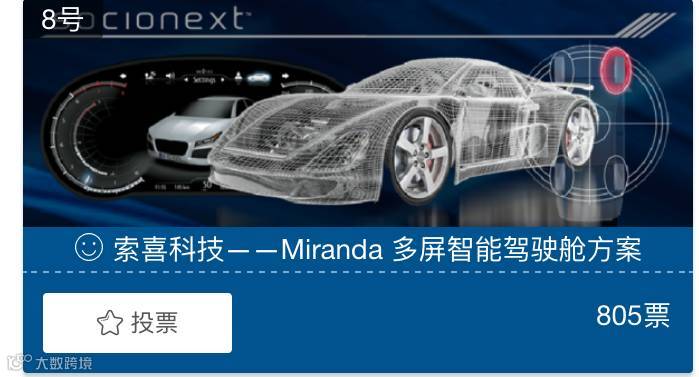 索喜科技(Socionext)接下江湖集结令,献上我司最新一代车载SoC——Miranda多屏智能驾驶舱方案前来竞选,本次活动将采用专家评选,大众投票的方式,希望大家可以多多支持哦!
