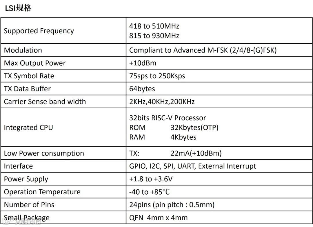 SC1330A是一款用于上行数据传输应用的SoC,采用Advanced M-FSK调制标准。Advanced M-FSK结合了超窄带通信技术和展频技术,采用ZiFiSense开发的物理层调制技术,并通过Socionext高频信号处理得以实现。