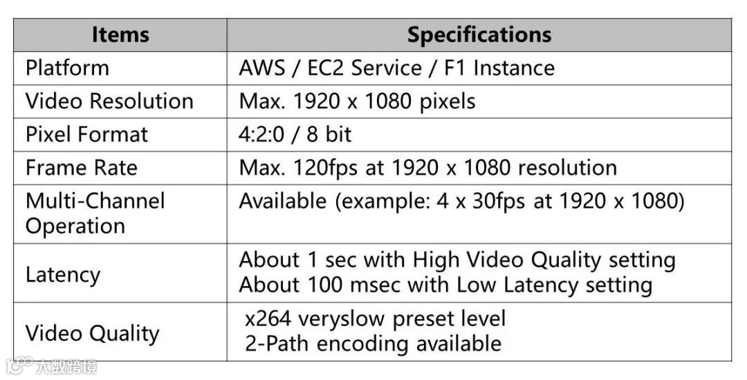 AWS F1实例使用 FPGA 实现自定义硬件加速交付。H.264 Encoder on AWS在F1实例上利用FPGA,为用户提供基于Socionext专有硬件编码器技术开发的加速器设备,完成软编码无法实现的高速、高画质视频压缩处理。此外,由于H.264 Encoder onAWS使用FFmpeg作为应用接口,因此视频分发服务提供商可以轻松地将其集成在现有的系统中使用。