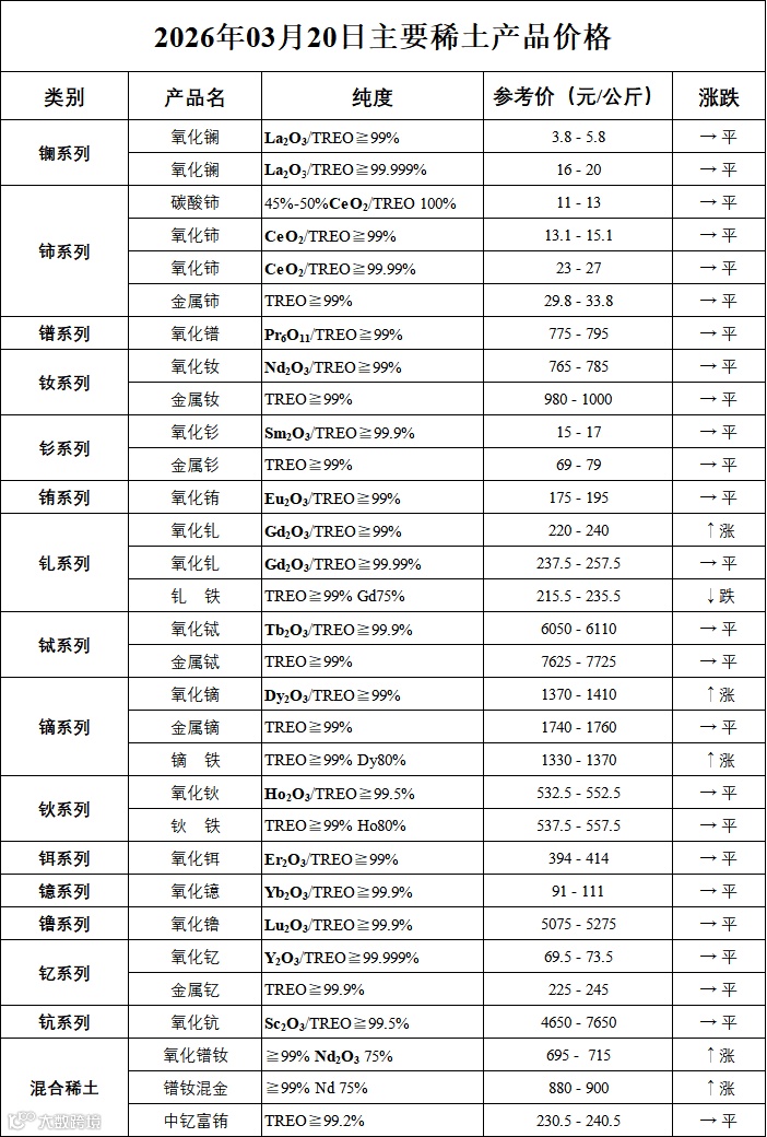 主要稀土价格